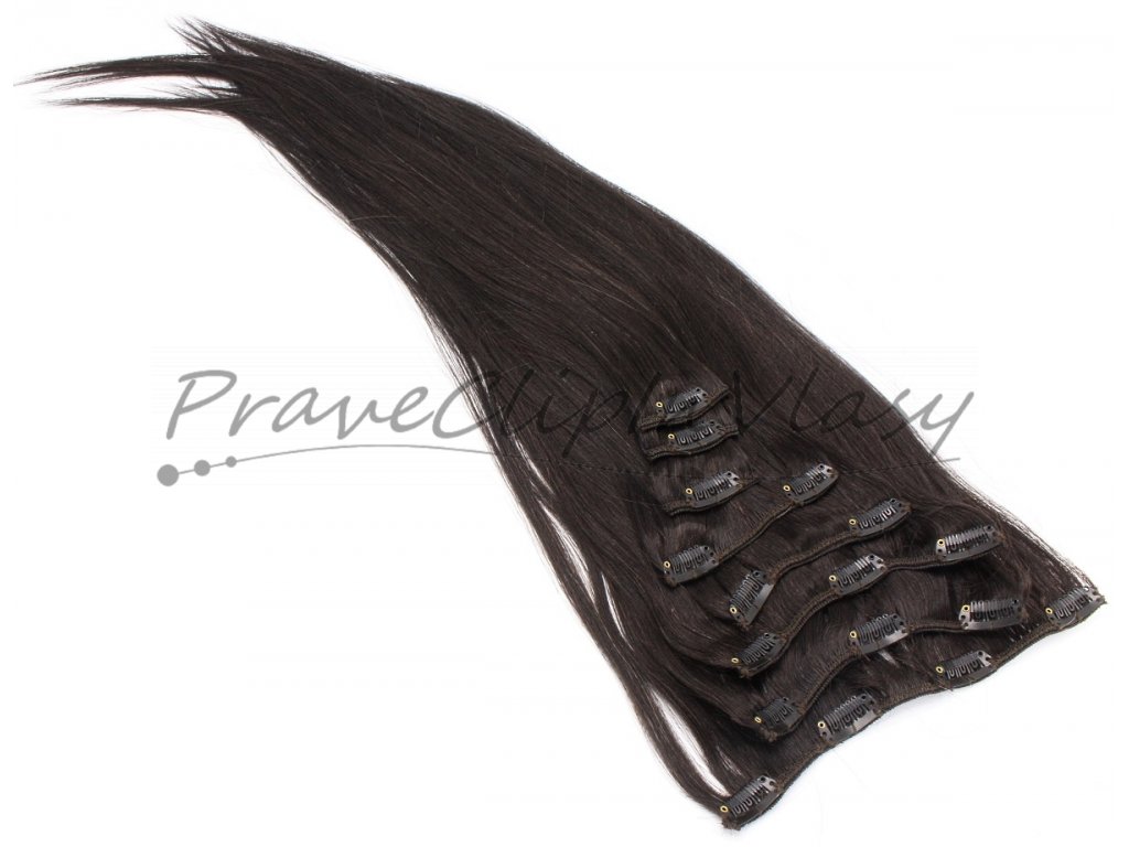 Clip In 100% lidské vlasy - 100g set 40cm - přírodní černá